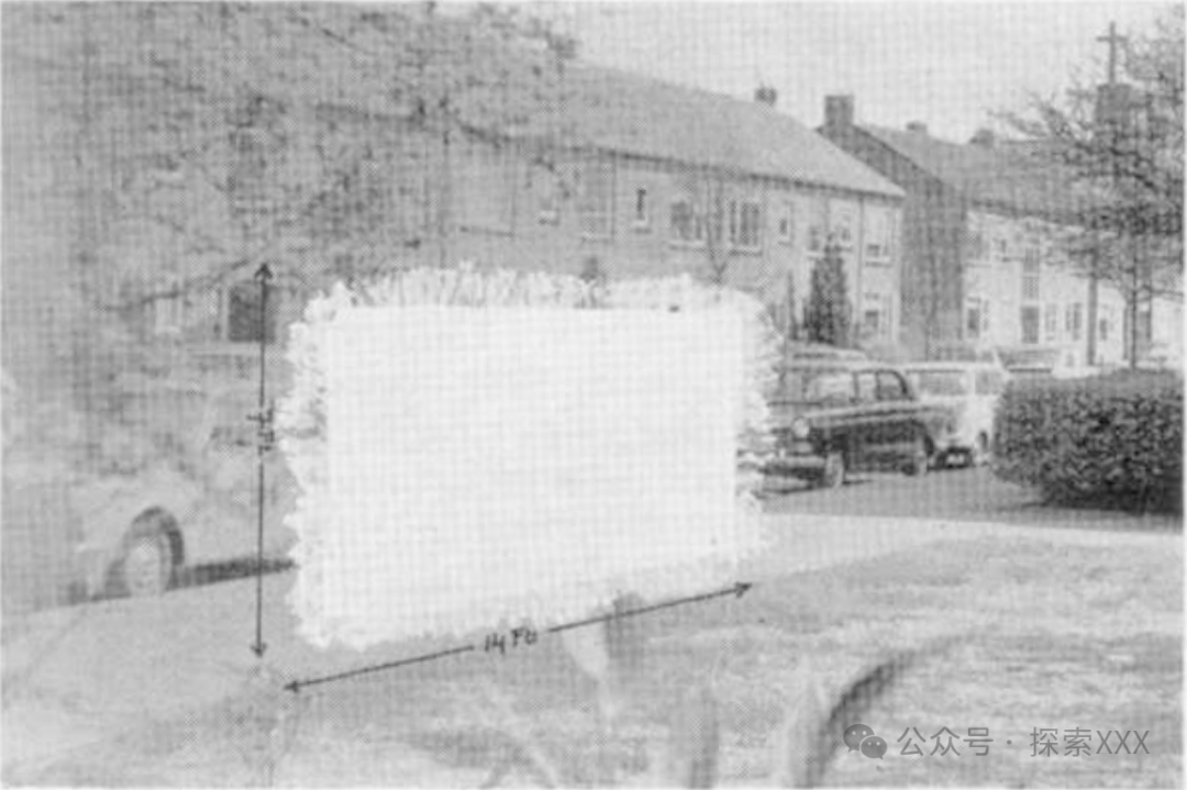 我的好奇心被勾起,我走到窗前想看看那是什么......我看到一道明亮、刺眼的白光,就像有人在房子前面点燃了火。我还看到“火”附近有一种“雾”。雾气像栅栏一样沿着人行道矗立,估计长4米,高2米。