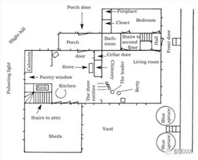贝蒂作为整个事件的主人公,是在那一刻唯一有记忆的人。根据催眠下贝蒂的叙述,有四个人形生物从厨房门直接穿过。他们的动作很快,移动时还留下了一个虚幻的影子。“他们穿过它的实木,仿佛它不存在似的”。
