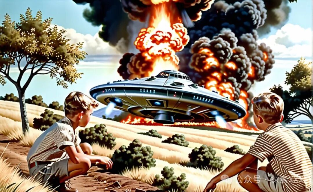 雷暴开始不久,雨就停了。两个小男孩再次出发去寻找那头牛。然而,他们才走了几步,头顶的天空中一道白光闪过,紧接着就是一声“嘎吱嘎吱”的声音,伴随着大地的震动。他们立即意识到这不是雷电,这声巨响和闪光可能与附近的白沙空军基地有关。出于好奇,两人决定朝着声音传来的方向前进。