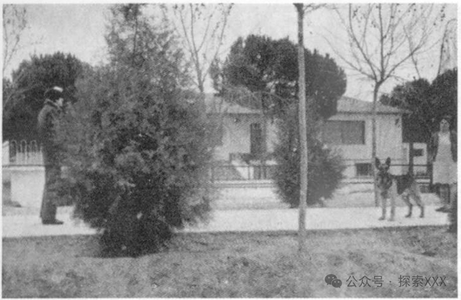 可以从图中看到农场上各种建筑的布局,特别要注意的是,整个农场都被围起来了。从目击者所在的小屋到河边的距离约为300米。通往农场的入口道宽约4.5米,两侧都有小树。此外,还需要特别指出的是,附近有一条13.2千伏的电力线,距离小屋约100米远。