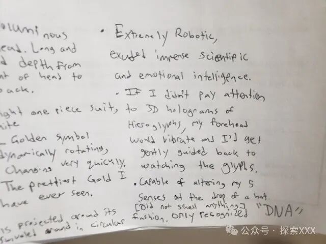 这些实体用一种看起来像是日本和埃及象形文字的联合体的语言,投射了数百/数千个句子和段落。我感到恐惧,几乎无法移动身体,我无法相信正在发生的事情。我试图说服自己,我可能正在经历某种突发事件,或者已经昏倒了,我所看到的不可能真的发生。然而,这种感觉比现实本身更真实。