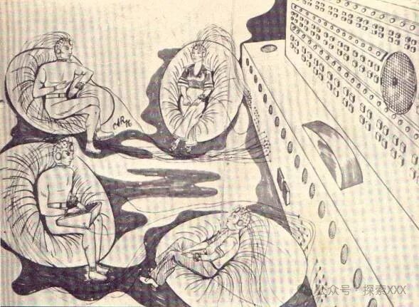 比安卡和埃尔米尼奥被引导到那些有着漂亮面板的大型设备旁边,面板上有许多圆形和方形的灯泡。陌生人让他们坐在一个设备旁边,其中一个走向一个类似衣柜的东西,拿起一个大盒子,另一个人打开了盒子,从里面拿出了两个头盔。他通过手势示意埃尔米尼奥戴上头盔。埃尔米尼奥没有表现出任何抵抗,他小心翼翼地戴上了头盔。比安卡也戴上了一顶头盔。