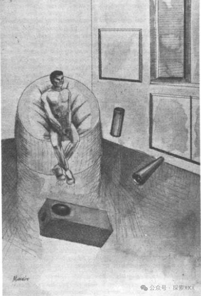 只有我的身体毛发竖立起来了。然后灯光逐渐减弱,最终完全熄灭。那个箱子不是由一种材料制成的。天花板和后面使用的材料与其余部分不同。同样的事情也发生在我的伴侣身上,到那时,他非常担心,不停地抱怨,说我们永远也离开不了这个地方。