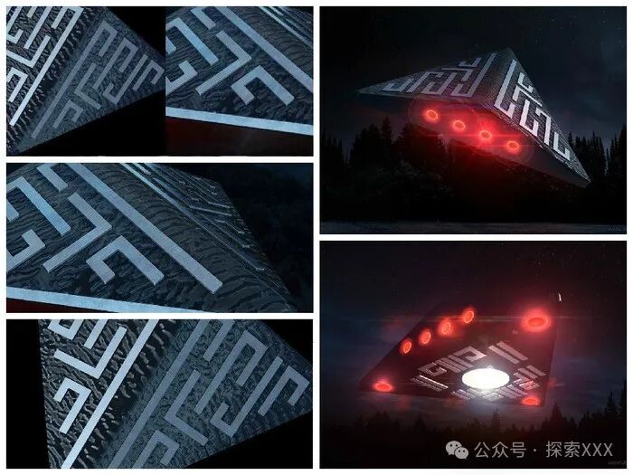 科林很快意识到那里有一个物体,只不过它此时是透明的!而就在这个时候,这个物体开始以一种最奇特的方式缓慢向上倾斜,就像飞艇或潜艇一样。倾斜不是从飞行器的中心开始,而是从后部开始,即后端保持在原来的位置,机头抬升到空中。而随着这个变化,物体开始现身,并最终完全实体化为一个巨大的三角形。