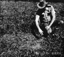 植被在每个三脚架圆圈的外缘被完全移除,形成了大约3英寸宽的甜甜圈形状(草在每个甜甜圈形区域的孔内扭曲或旋转)。在其余的4英尺直径圆圈内的草变成了深紫黑色,不完全是被烧焦,而是非常干燥。在当时的牧场,其余的草地仍然郁郁葱葱,因为那时还没有出现本季的第一次霜冻。