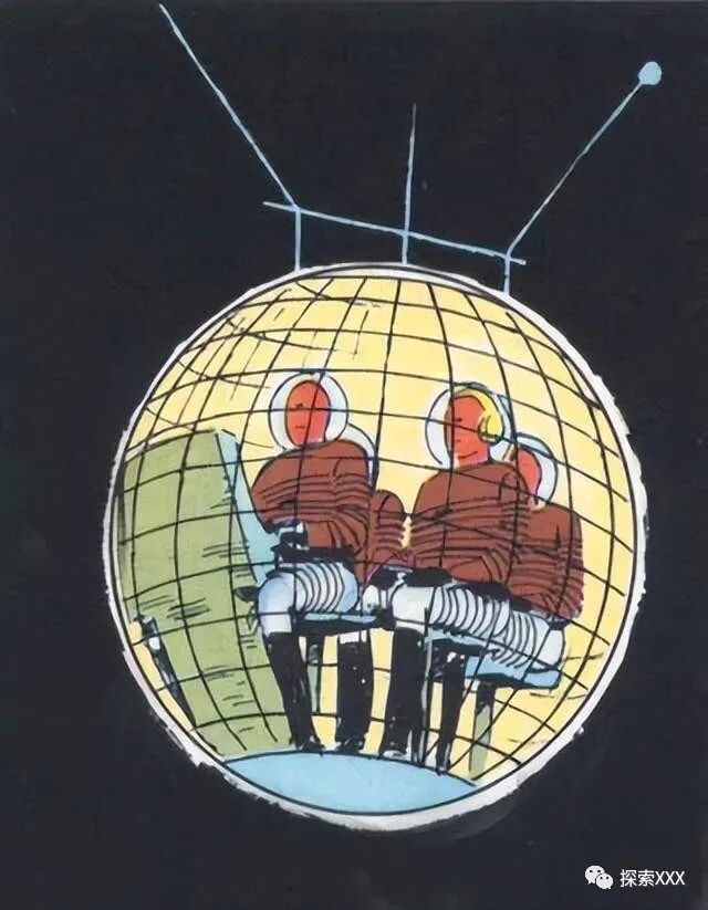 透过透明的墙壁,罗纳尔多可以看到有四个“人”坐在单脚凳上。坐在后座上的那个看上去很男性化,比其他人更强壮;在它的正前方,球体的中央,坐着一个似乎是女人的生物,因为它有后梳着的长长的金发;前排座位上坐着一个和第一个相似的生物,但更瘦一些,它似乎在控制一块面板上的仪器,面板上有一种类似电视的屏幕;最后一个生物坐在金发生物的左侧。