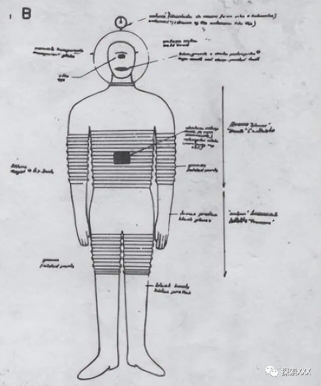 它们的外表几乎是一样的,甚至连衣服也是一样的。它们都穿着一种类似于“潜水服”的服装,头被包裹在一个圆形的、透明的圆顶或头盔中;胸前一些部位布满了皱纹;腰部以下的衣服是白色的,直到膝盖,从膝盖到脚都是黑色的 (根据目击的说法,他们穿着“黑色靴子”)。这些制服似乎是用皮革制成的。