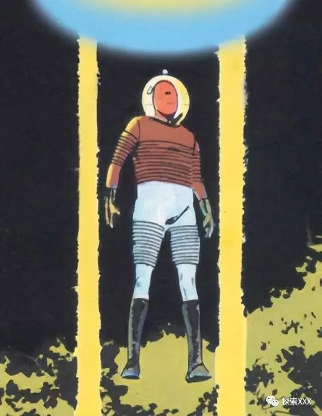孩子们意识到,它是从飞船里负责仪器的同伴那里得到了一个手势暗示。也就在那个生物转身的一瞬间,孩子们看到他衣服上还挂着一个铜色的盒子。
