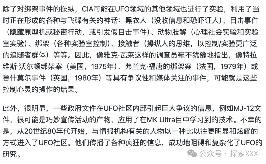 所有这些元素和程序,在CIA的心灵控制手册中都不陌生。特别是在南美,该机构因想要“干预”地区政治而闻名。CIA会使用各种手段,包括秘密下令暗杀一些政治家。类似的手段在意大利以及越南也发生过。而利用UFO的影响,的确更加安全,而且或许在这些稍微落后的地区效果更好。