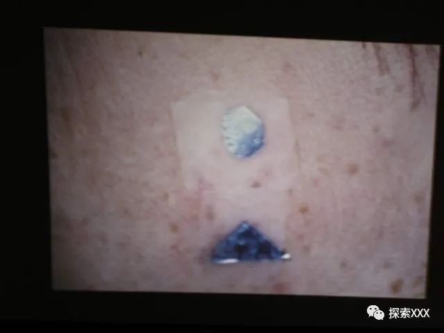 最终,这次取出了一个覆盖着深灰色闪亮膜的小金属三角形物体,和两个灰白色的小球,直径大约4.6毫米。皮肤科医生认为这个灰白色的小球是一种普通的钙沉积。患者的皮肤病变初步诊断为钙化上皮瘤,但材料分析显示,有大量的从未见过的元素附着在患处。此外,该类型皮损的临床研究从未出现过。