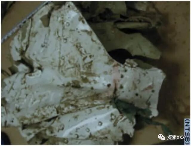 调查人员还在飞机靠近机身的左侧机翼中,发现了一小块黑色阳极氧化铝,而铝并不是失事飞机上的。调查人员无法解释这一小块碎片的来源。