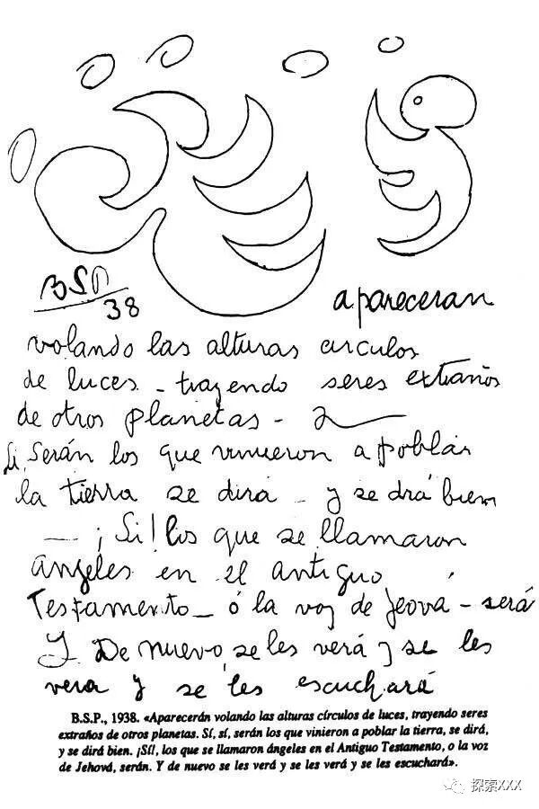 “在高空会出现一圈圈的光,带来来自其他星球的奇怪生物。是的,是的,他们将是来到地球上居住的生物,人们会这么说,而且会说得很好。是的,那些在旧约中被称为天使的人,或被称为耶和华之声的人,他们将成为天使。他们必再被看见,被看见,被听见。”