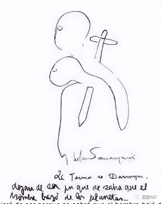 一个外星人走近这位艺术家,用心灵感应的方式告诉他:“你必须宣扬爱,宇宙是和谐的,你的行为很有攻击性。我们有几个精选的,我们会再见面的。”