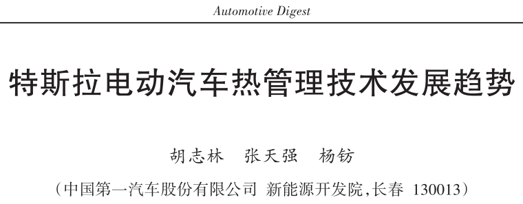 主题词:特斯拉,电动汽车,热管理,HVAC