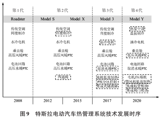 按照时间顺序对特斯拉电动汽车热管理系统技术进行汇总,如图9所示。