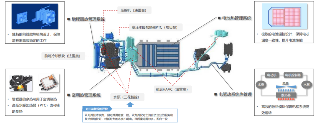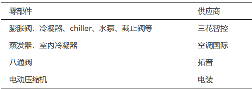 其中,马勒提供空调系统及控制器,翰昂提供压缩机,博世提供水泵,大陆提供水阀。