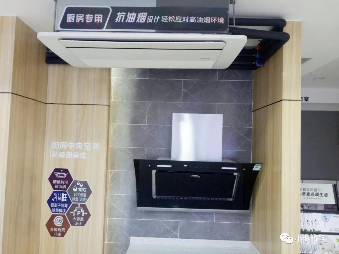 厨房专用空调,装出来是类似于中央空调的形式,主机藏在吊顶里,出风口可以随意调整位置。对于厨房来说,还节省了不少空间。