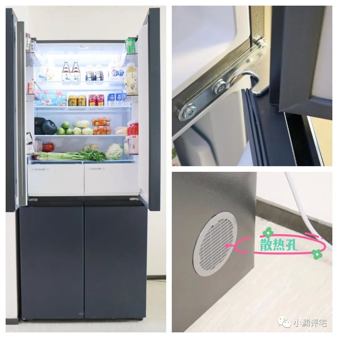 留着宽宽的缝隙不好看?那你就多花点钱,买专业的嵌入式冰箱。这种冰箱把散热器改到了底部,冰箱门轴也改成了不会外展的合页,内部抽屉也设计成了开门90°也能完全打开的。因此严丝合缝地摆在柜子中间,也不会有任何问题。