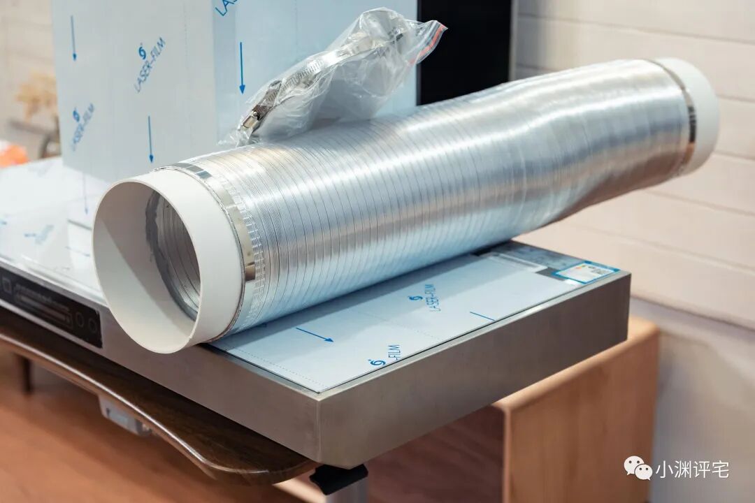 在公共烟道和油烟机烟管(软管)相交的地方,会有一个止回阀。因为是公共烟道,一到做饭高峰期,烟道里的压力会比较大。为了防止烟道反味,才装的这个阀门。