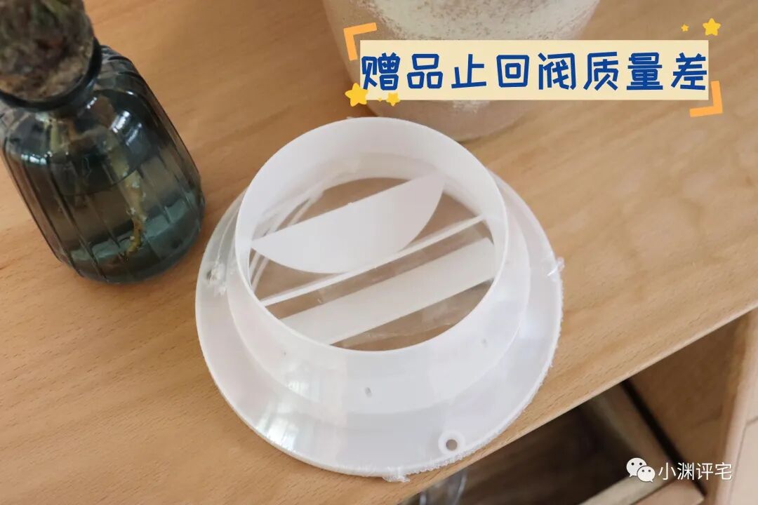 止回阀的结构很简单:几块活动的塑料板,风从室内向外吹,就能把烟道吹开。风反过来从烟道往室内吹,塑料板就会被卡住。