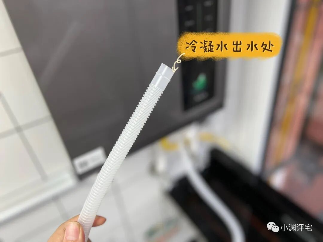 这种燃气热水器,叫“冷凝式燃气热水器”(常见的是“强排式燃气热水器”)。效率极高,但是需要向外排放冷凝水,影响厨房颜值。