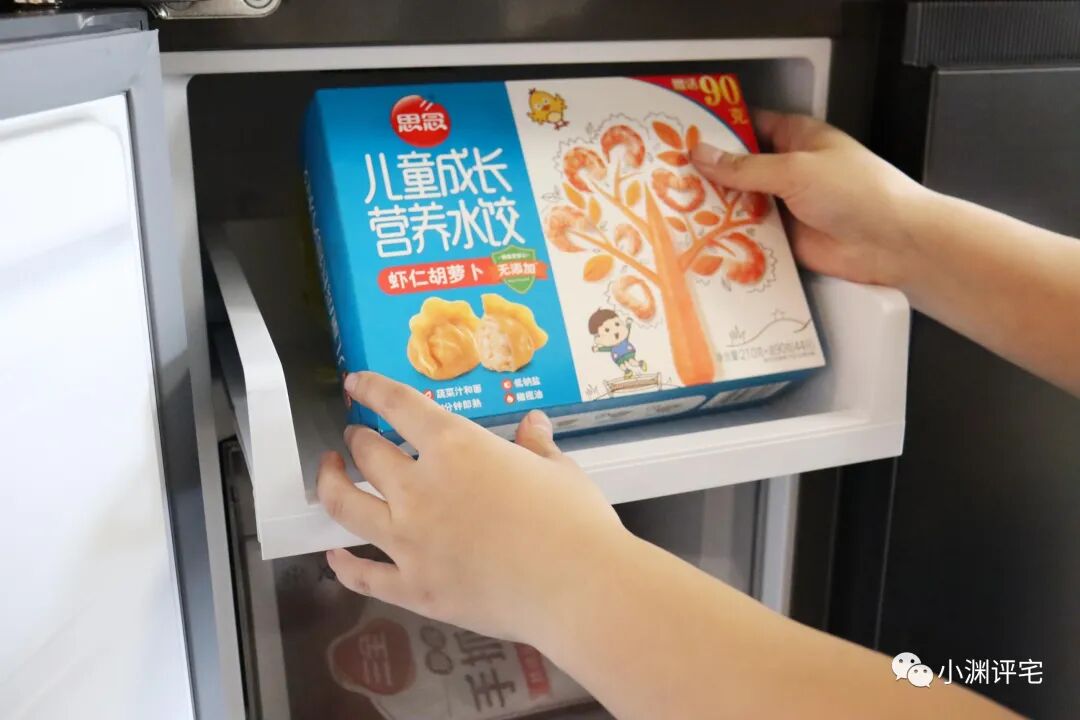 ③冷藏室门上置物架,嵌入冰箱最下面是空的,意味着90°开门也不影响抽屉的使用。