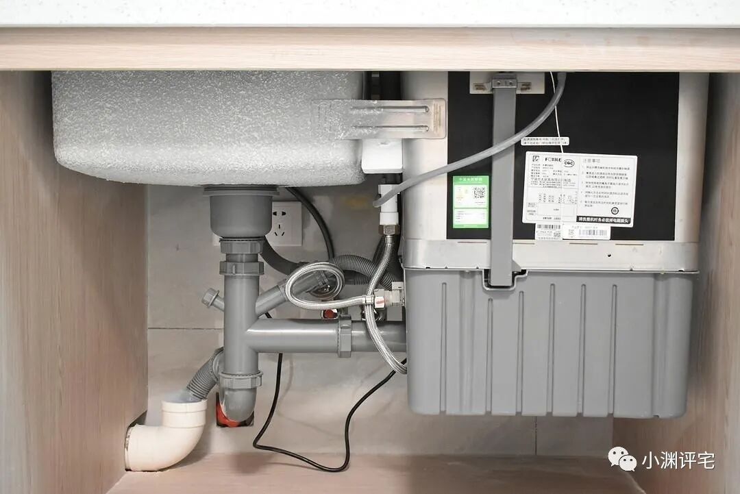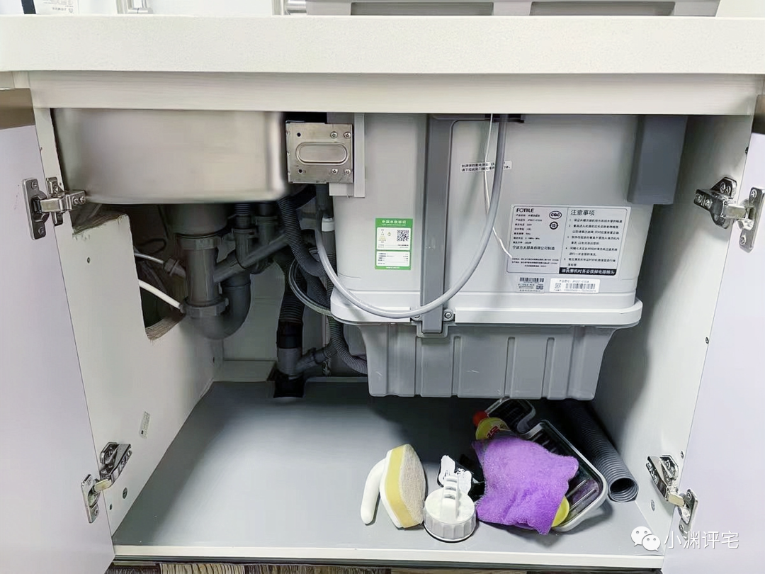 水槽式洗碗机的确不需要拆掉橱柜,但柜内空间依然所剩无几了。它的整个机身都藏在橱柜里面,旁边勉强能再挤进去一个小型的净水机。