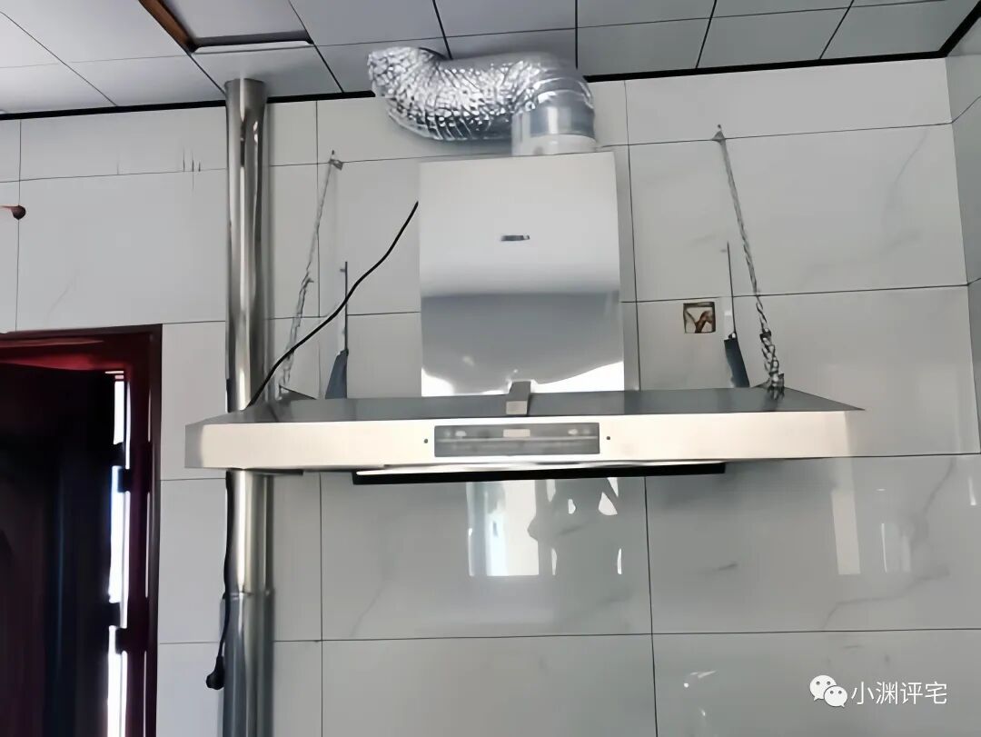 前面也说了,顶吸式油烟机最大的问题就是油烟会扩散。所以要在顶吸式油烟机上做一个大罩子,把油烟聚拢起来,不让油烟到处飘。