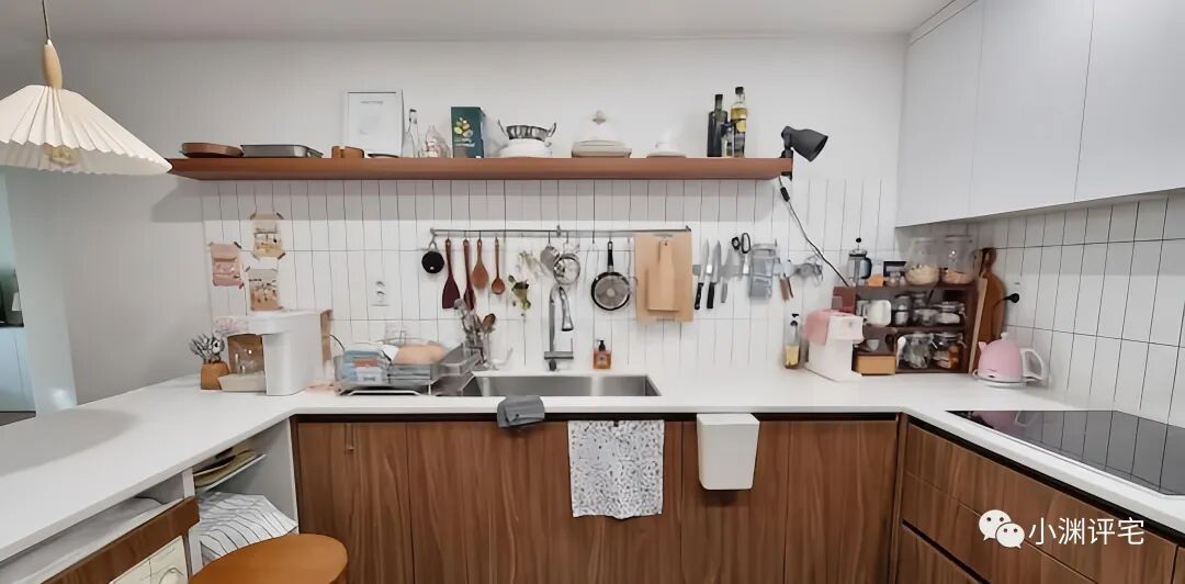 厨房像个战场,一顿饭做完,房间里会变得一片狼藉。毫无遮拦的房间,会把这种景象倾斜在客厅里。本来是为了好看而做的开放式厨房,现在反而成了“污点”。