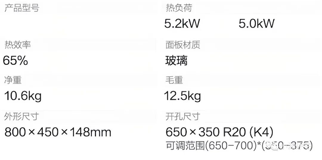 但有些燃气灶的功率值有两个,比如下面这台燃气灶,功率就是5.2kW/5.0kW。这意味着其中一个灶眼的功率是5.2kW,另一个是5.0kW。