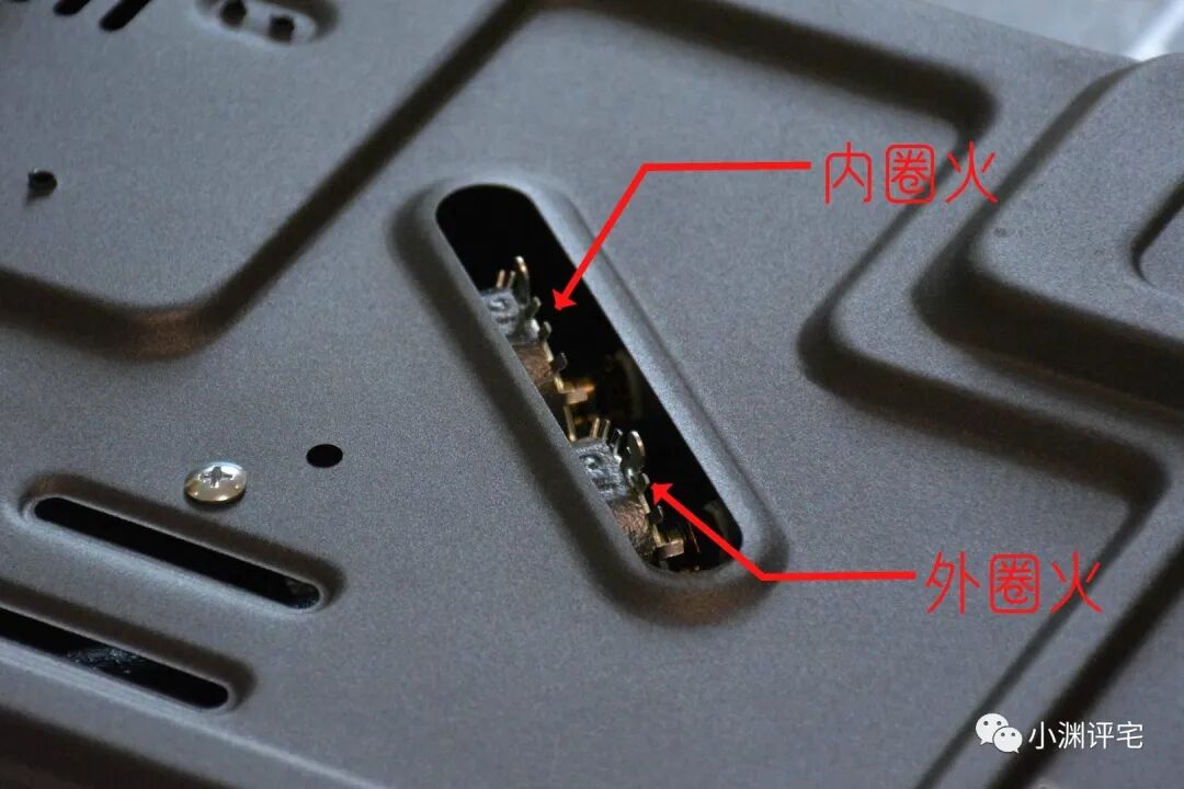机关位置:如上图,燃气灶底部的左右两侧各有两个阀门,这就是风门。两组风门,分别对应左右两个炉头。内侧风门负责内圈火,外侧风门负责外圈火。
