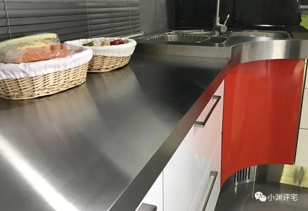 厚钢就好用多了,可选择的颜色也不再局限于钢本色。还没有石材易被磕碰、容易渗色、需要拼接等问题。唯一缺点大概就是划痕了,但不是薄钢表面那种划痕,是类似于瓷砖表面那种很浅的划痕。