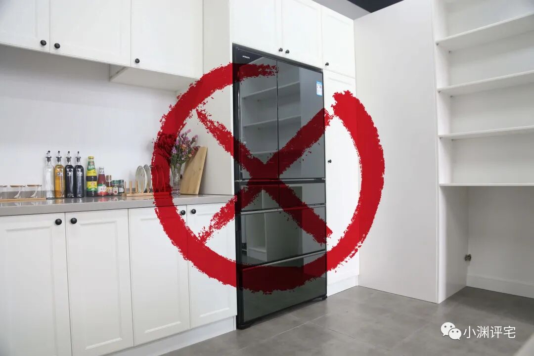 正确做法:冰箱两侧至少预留15cm散热空间,想要散热、开门都很顺畅,最好不低于20cm。换句话说,嵌入、半嵌入式的安装方式,都是错误的。