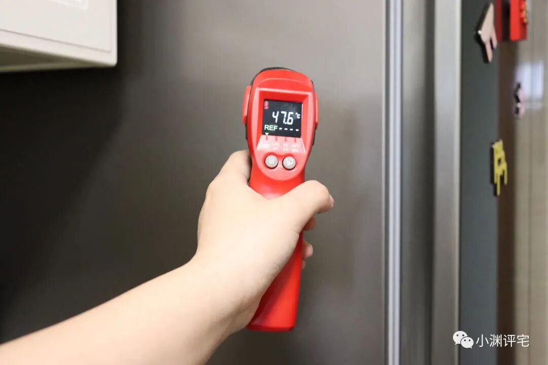 所以正常工作时,冰箱两侧就是会烫手。为此我还专门测量了一下:烫手时的温度在40℃以上。