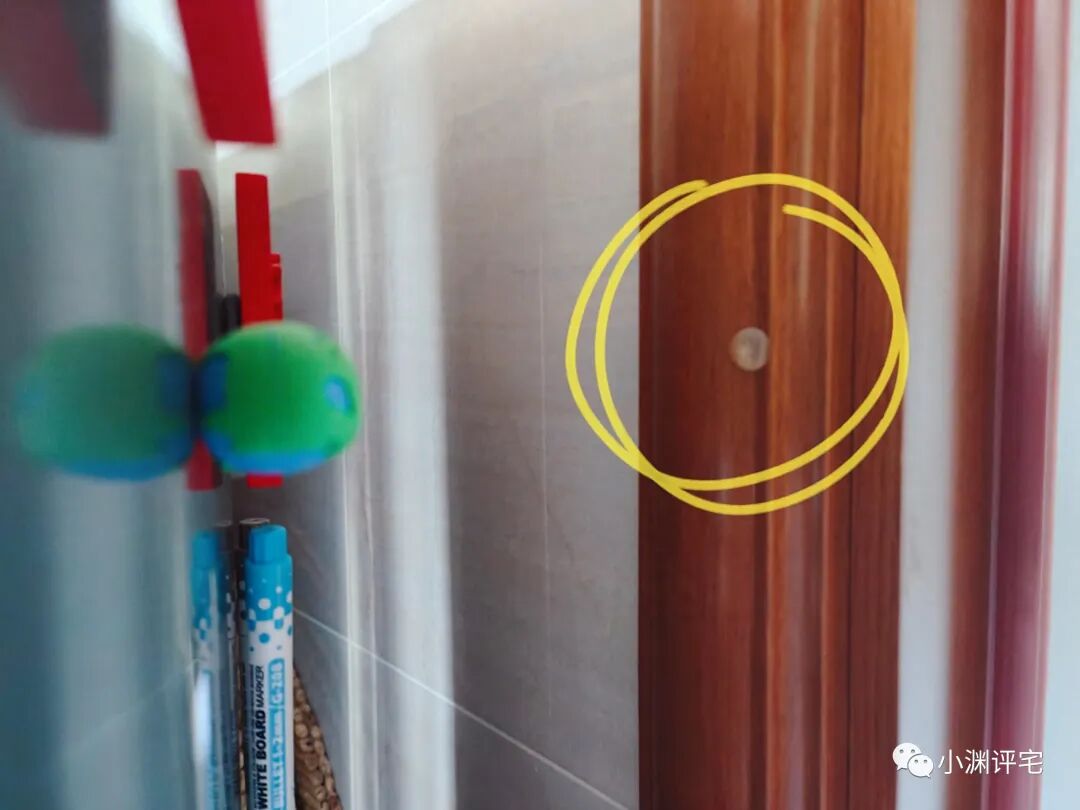 散热就需要空间,我家厨房又比较窄小,恰恰忘了预留足够的散热空间。窄小到什么程度呢?另一侧连冰箱门都打不开,我还专门在墙上贴了个防撞胶垫▽