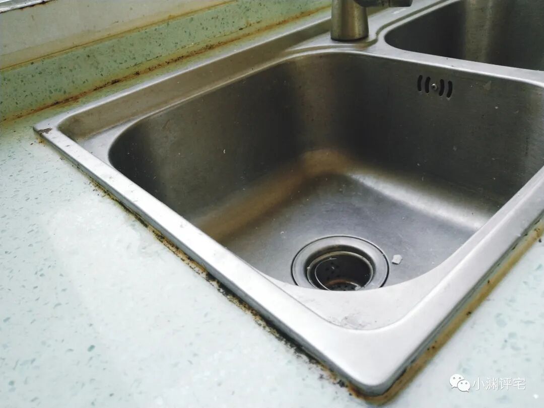 时间久了,玻璃胶就会变黄、发霉。台面上的垃圾、水渍,也没法直接扫进水槽里。