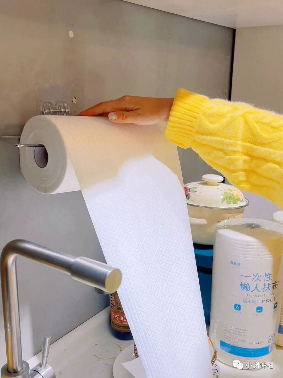 为了更干净,也为了更方便,可以选懒人抹布:它是一种纸巾,但比普通纸巾更厚、更硬,沾水也不会破。表面有暗纹,摩擦力更大,清洁能力更强。