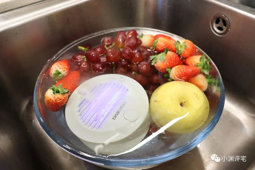 果蔬清洗机很神奇:把清洗机和食物同时泡在一盆水里,打开清洗机,食物表面的灰尘、农残、血水就会消失不见——不用加洗涤剂,不用脏手。