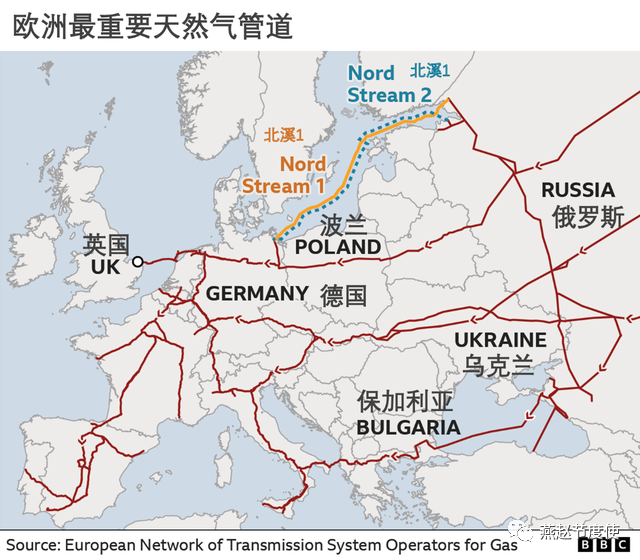 欧洲约36%的天然气来自俄罗斯,而欧盟约43%的天然气来自俄罗斯。