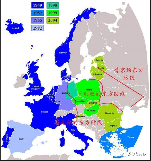 而如今,“铁幕”已经向东移了几百甚至上千公里,将华约和原苏联在欧洲的加盟共和国除了白俄罗斯、乌克兰之外的所有国家如波罗的海三国、波兰、保加利亚、摩尔多瓦、罗马尼亚等纷纷纳入自己的掌控之中,边界与俄罗斯的核心区域如莫斯科、圣彼得堡相距不远了。