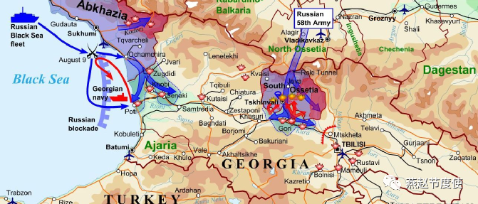 战后,原属于格鲁吉亚的南奥塞梯和阿布哈兹宣布独立,实际上成了俄罗斯的势力范围。