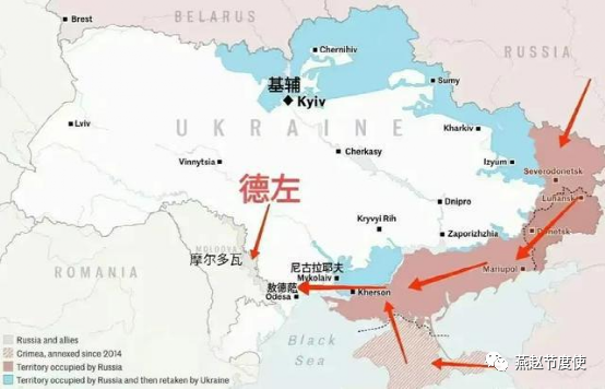 如果乌军进攻德左,将驻扎在这里6500名俄军全部消灭或俘虏,将会是对俄罗斯的一次沉重打击。而且这次军事行动会得到美欧的大力支持。因为长期以来,德左和当地驻扎的俄军可以说是嵌入东南欧的一个楔子,让美欧十分不爽。