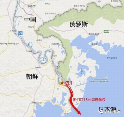图们江最后15公里是朝鲜与俄罗斯的界河,然后流入日本海。吉林省距离出海口仅有15公里。
