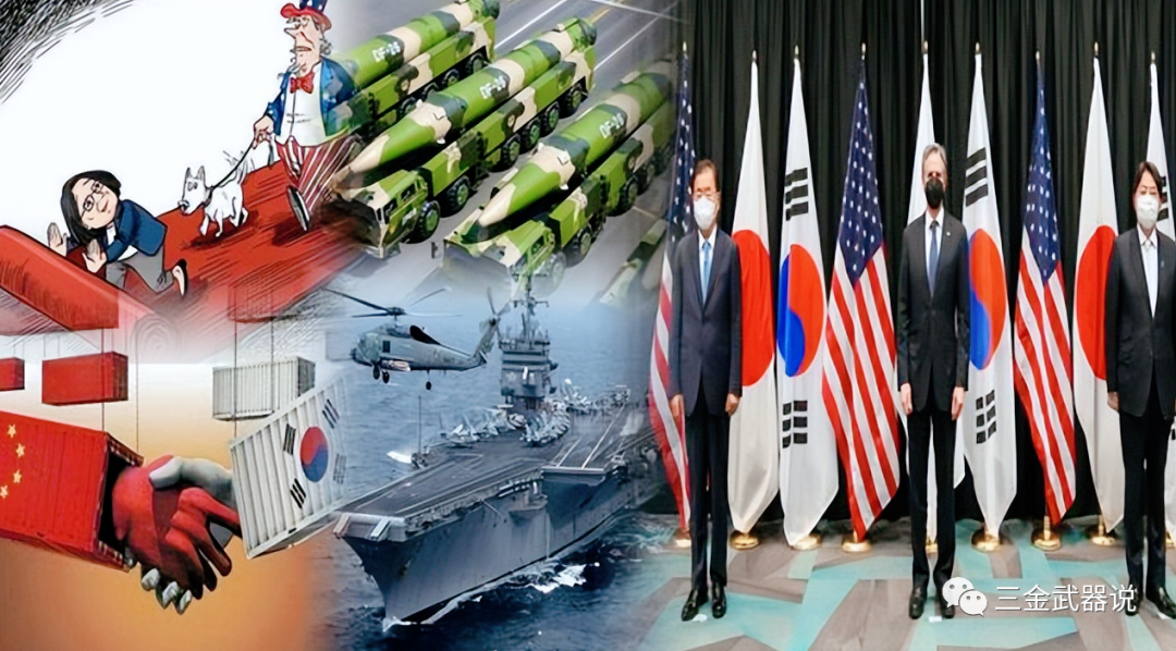 美日韩三国是沆瀣一气,在干扰我国的台湾统一问题上一直横加阻挠,日韩两国是美国的盟友国,极尽谄媚,日本允许美国在境内设置了80多个军事基地,美军在琉璃群岛设置的军事基地直接对着我国,而韩国早就部署了萨德系统,更是美国的忠犬。