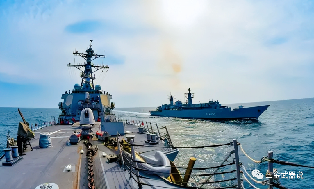 伊朗的三艘船围追堵截了两艘美国军舰,在美国军舰向他们领地靠近的时候进行了长达两个小时的对峙。