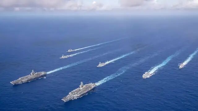 美国一直以来都对中国虎视眈眈,而在这样的发展过程当中,他们也并不收敛。在我国的临近国界线的地方,尤其是海上区域他们其实一直有武装力量的出现,而这一次他们更是直接进入了一个攻击的正位,对中国进行了打击势力的一字排开,并且根据数据看来他们的三艘航母都已经一字排开了。