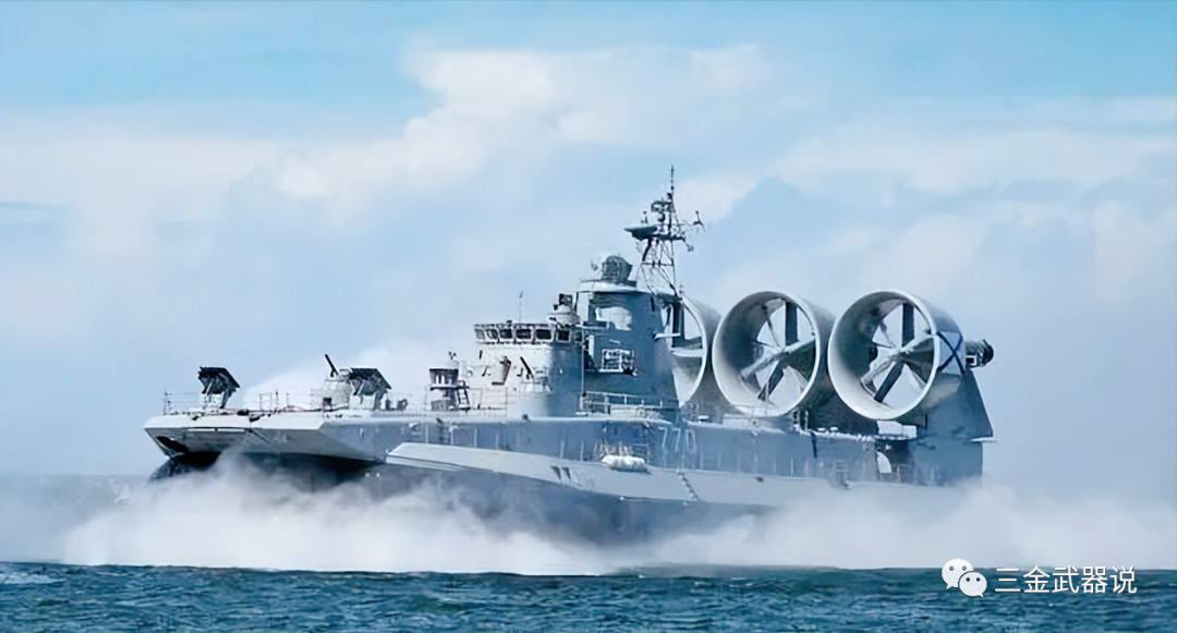 气垫船在一些登陆战舰当中的运用是比较多,由于它需要达到这样的进展,所以在早期的发展过程当中也会做更多方面的考虑,但我国的这一款气垫厂最大的一个优势在于,它可以飞起来。