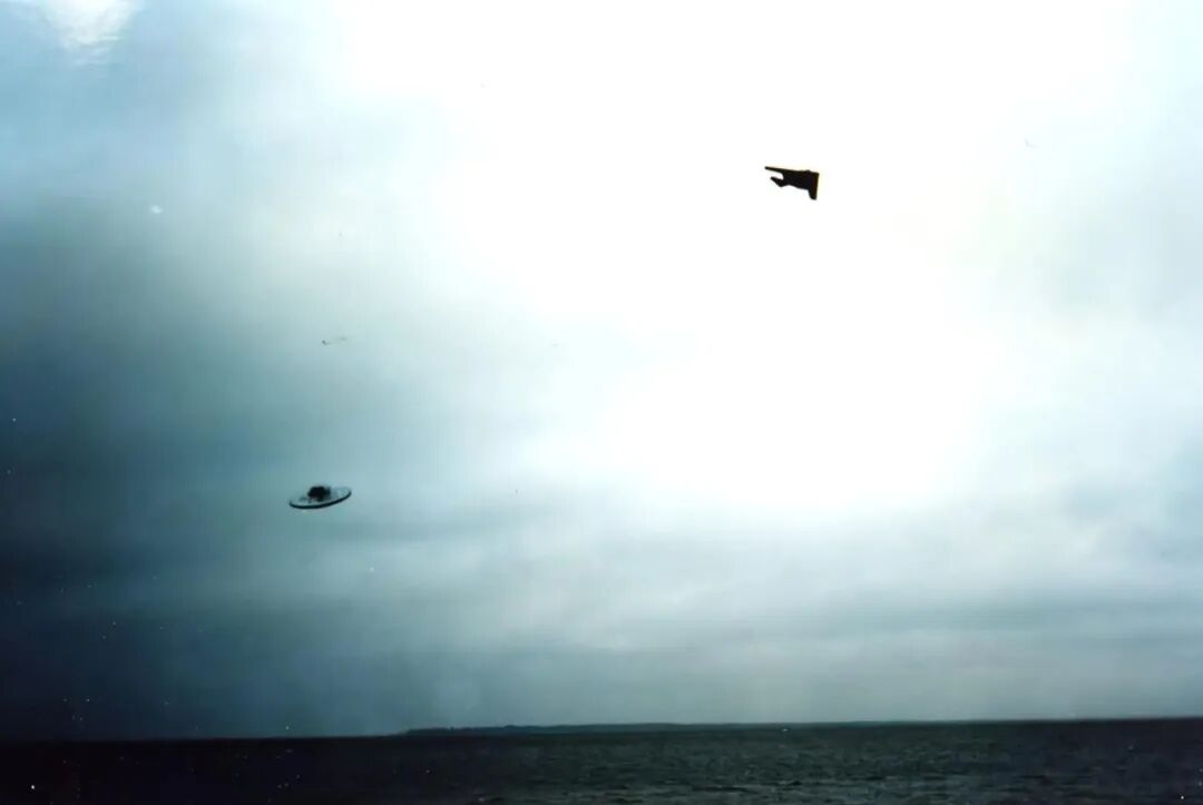 飞碟和F117隐形飞机同框非常惊人,它们相当的接近,但更多的疑惑是,这些飞碟是外星人造访的证据,还是地外军工复合体的产品......
