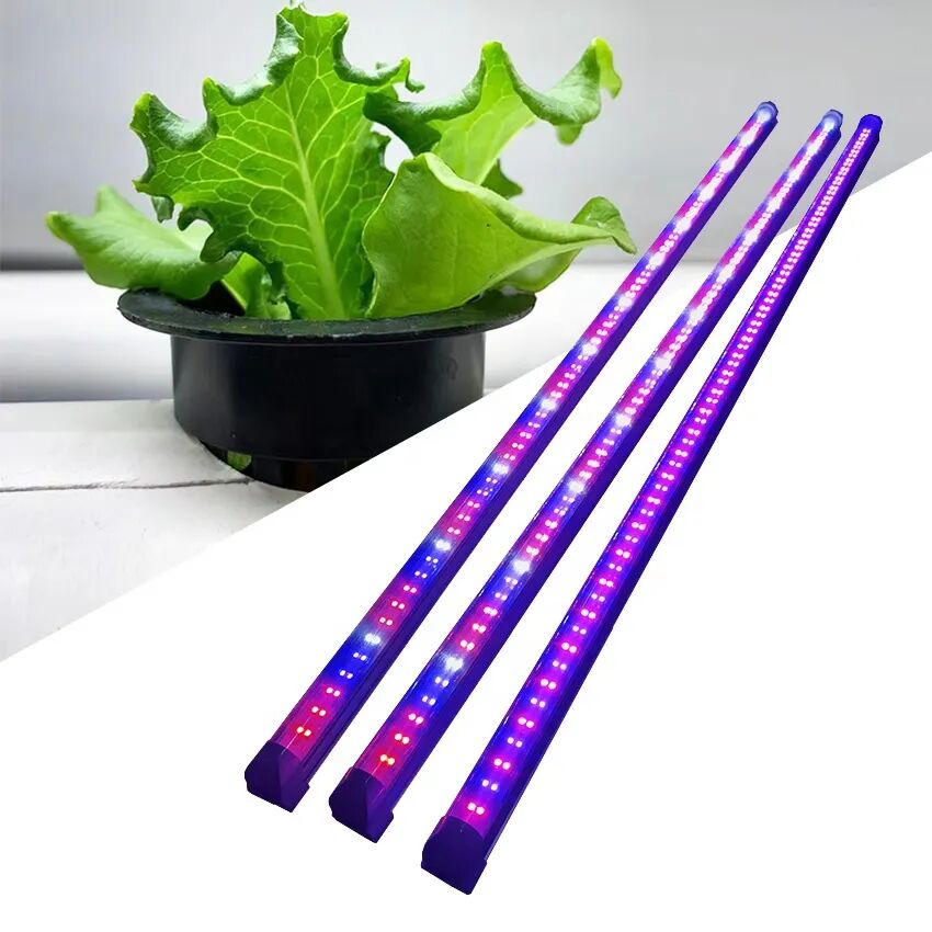 为什么是紫色呢?因为蓝红色是植物吸收光谱的最高效部分。所以这些LED灯通常是蓝、红色的组合。其效果就是我们看见的紫色。