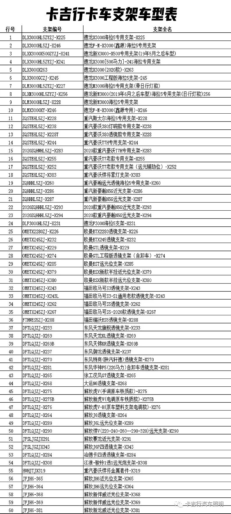 卡吉行卡车支架车型表 | ||